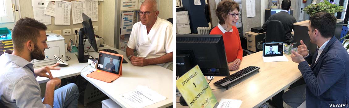 Grazie alla piattaforma VEASYT Live!, inoltre, l’AULSS 7 Pedemontana ha anche a disposizione il servizio di video-interpretariato in lingue vocali (inglese, francese, arabo, ecc) in modalità su appuntamento. Con sole 24ore di anticipo, medici, infermieri possono prenotare un mediatore linguistico-culturale professionista in videochiamata. Un’opportunità molto importante per permettere al personale medico e infermieristico dell’AULSS 7 di comunicare agevolmente con pazienti di lingua straniera che afferiscono all’AULSS, o turisti che necessitino di assistenza.